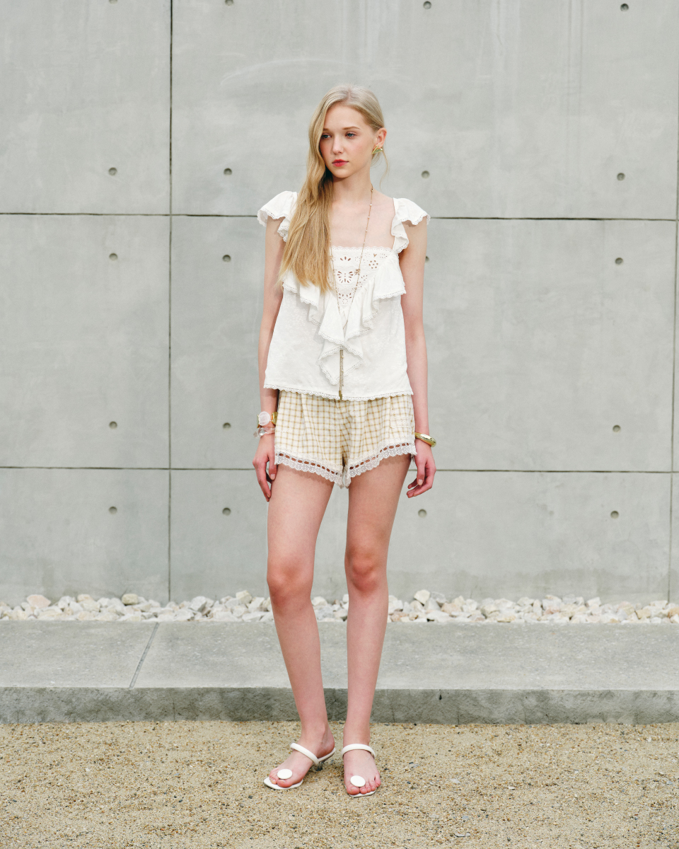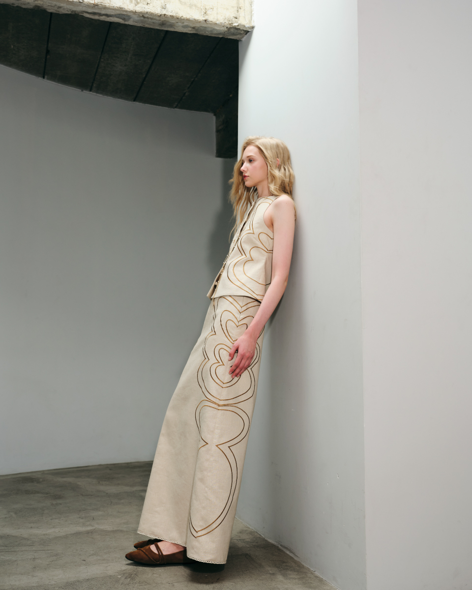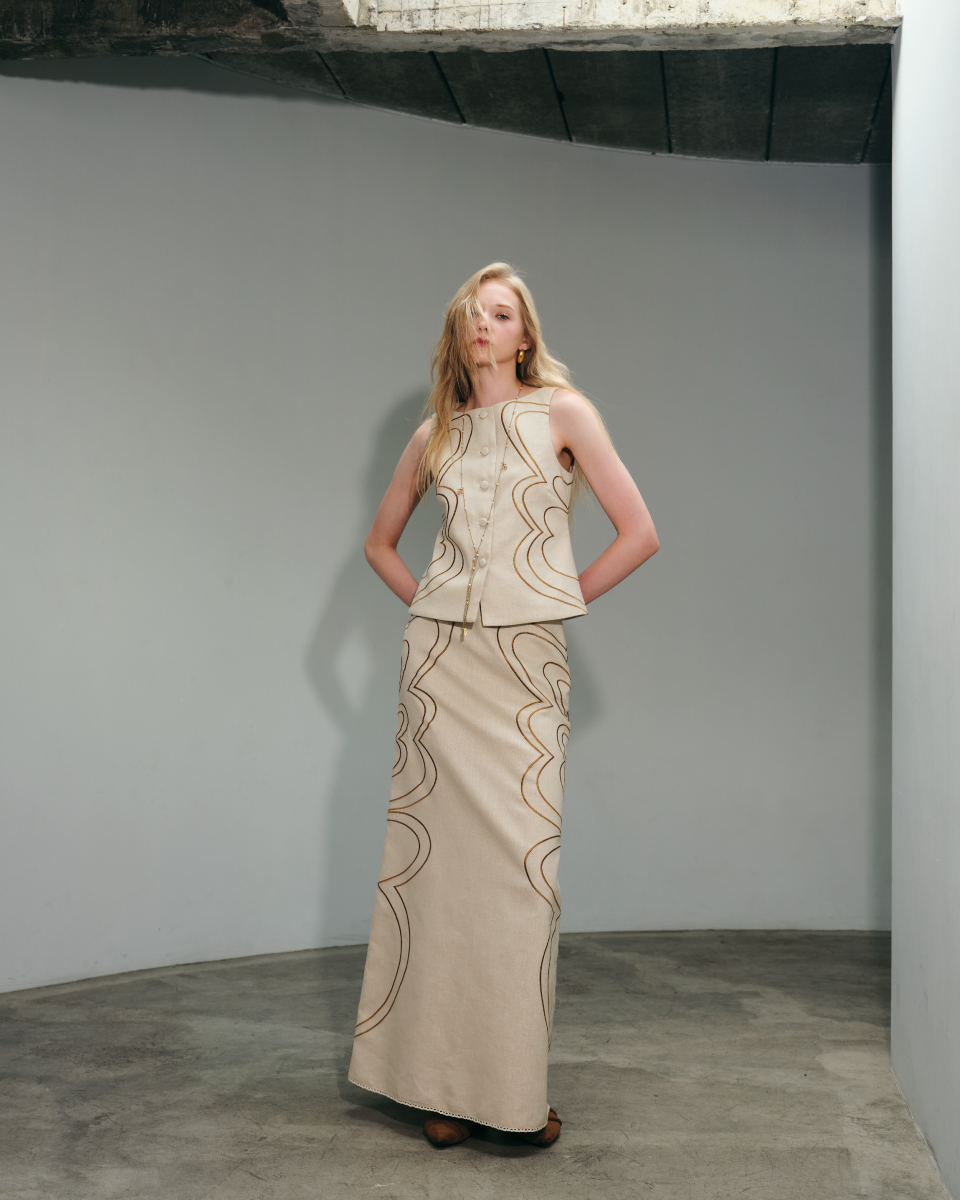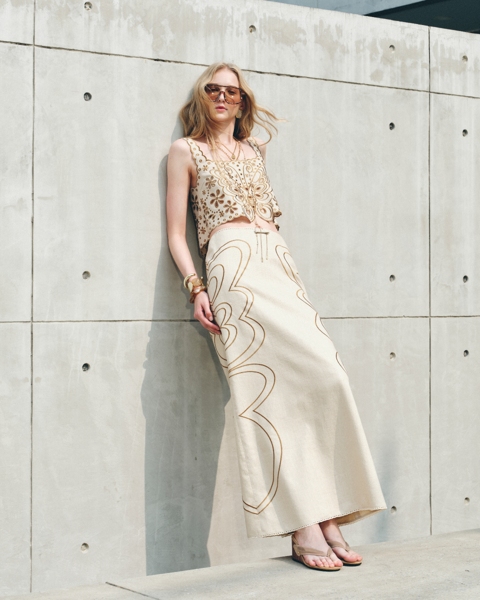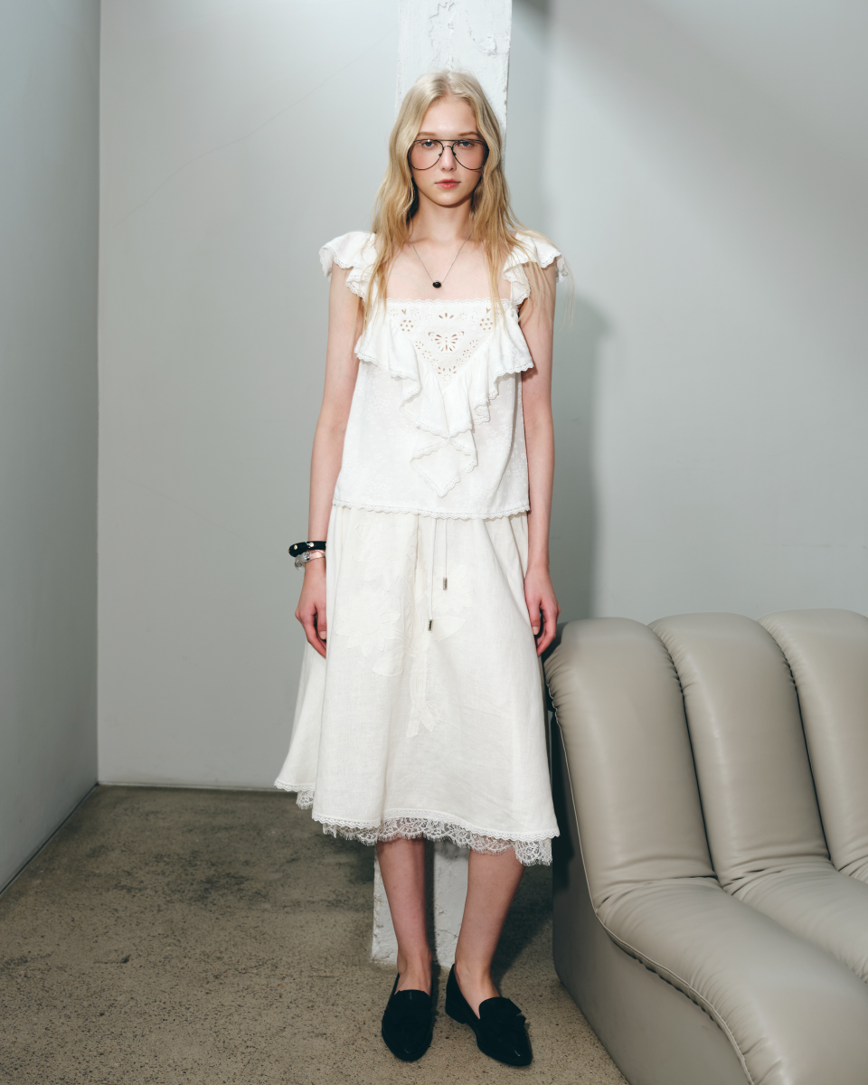 With a strong focus on fabric and silhouette, the collection is crafted from natural linen and cotton, shaped into fluid forms that move gracefully with the body. Soft lace details are thoughtfully incorporated, adding an air of femininity and lightness to nearly every piece.