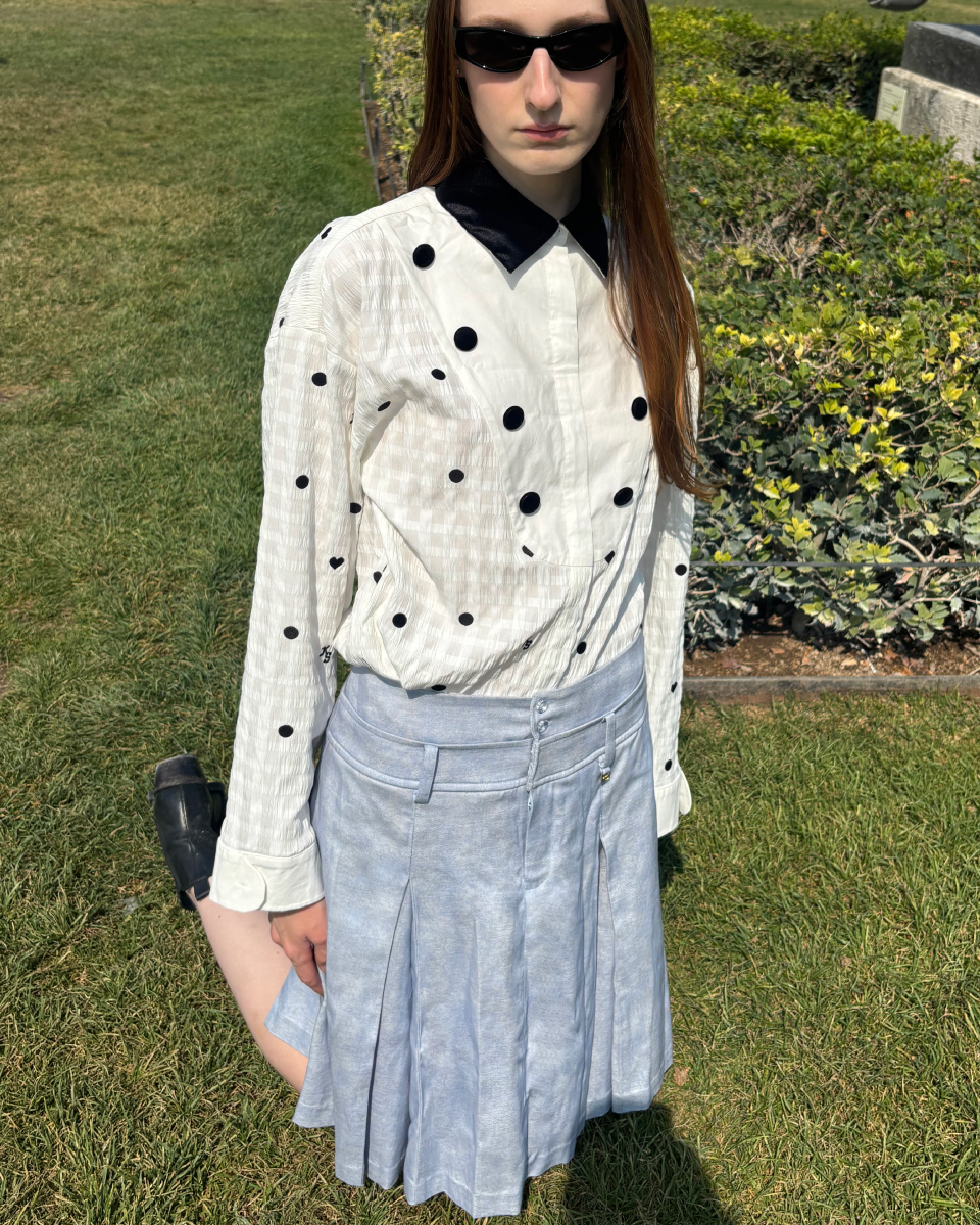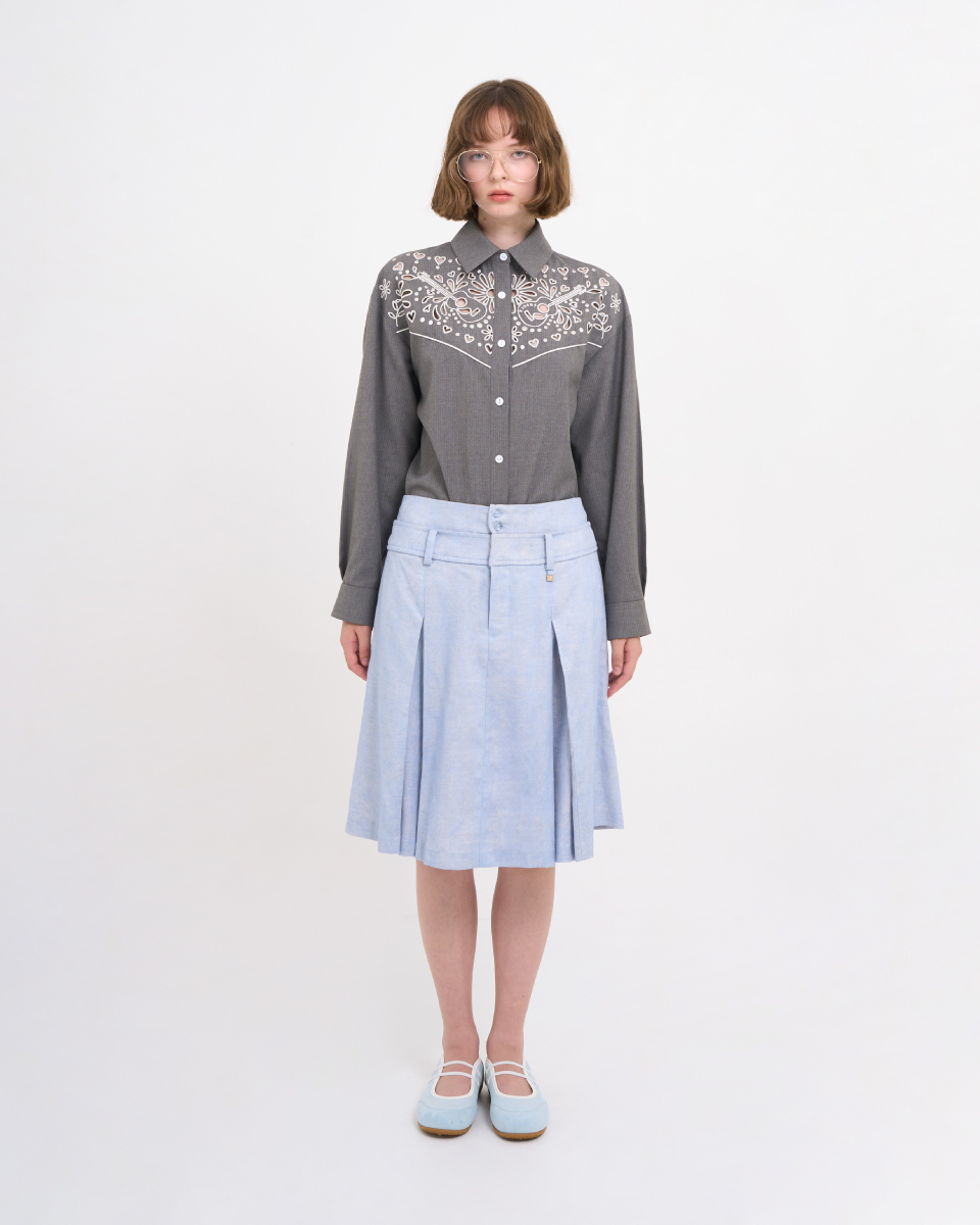 กระโปรงยาวจับจีบ เพิ่มความพลิ้วและขับรูปร่างอย่างมีสไตล์ ช่วงเอวตัดต่อดีไซน์เหมือนเข็มขัดช่วยเน้นเอวให้ดูเพรียว ผลิตจากผ้าคอตตอนคุณภาพดี สวมใส่สบาย