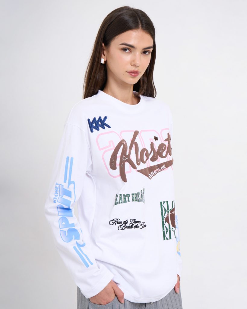 Fit & Detail: A statement long-sleeve T-shirt featuring bold graphic prints and logo details inspired by sporty street style. Made from soft, comfortable fabric with a relaxed fit, perfect for everyday wear and effortless layering.