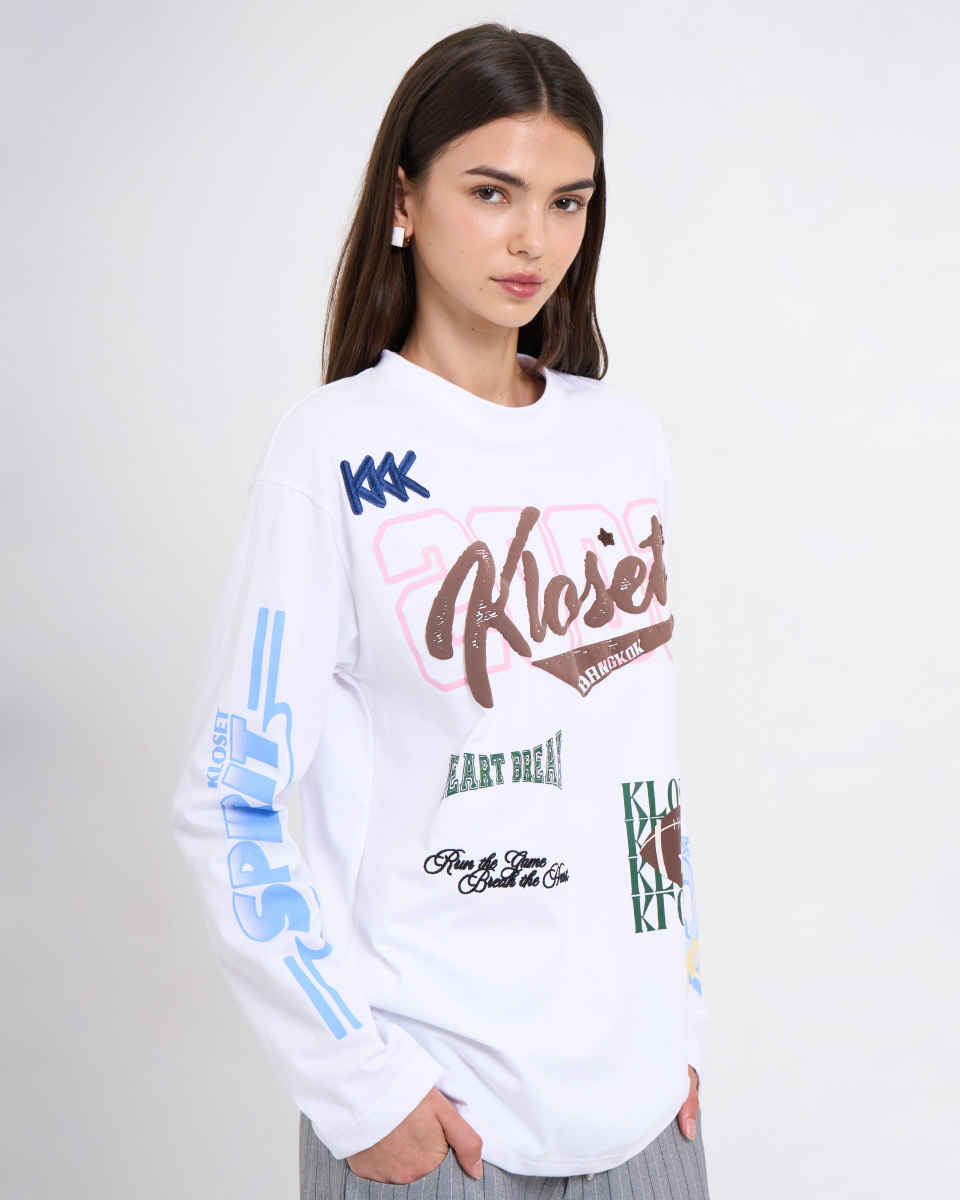 Fit & Detail: A statement long-sleeve T-shirt featuring bold graphic prints and logo details inspired by sporty street style. Made from soft, comfortable fabric with a relaxed fit, perfect for everyday wear and effortless layering.