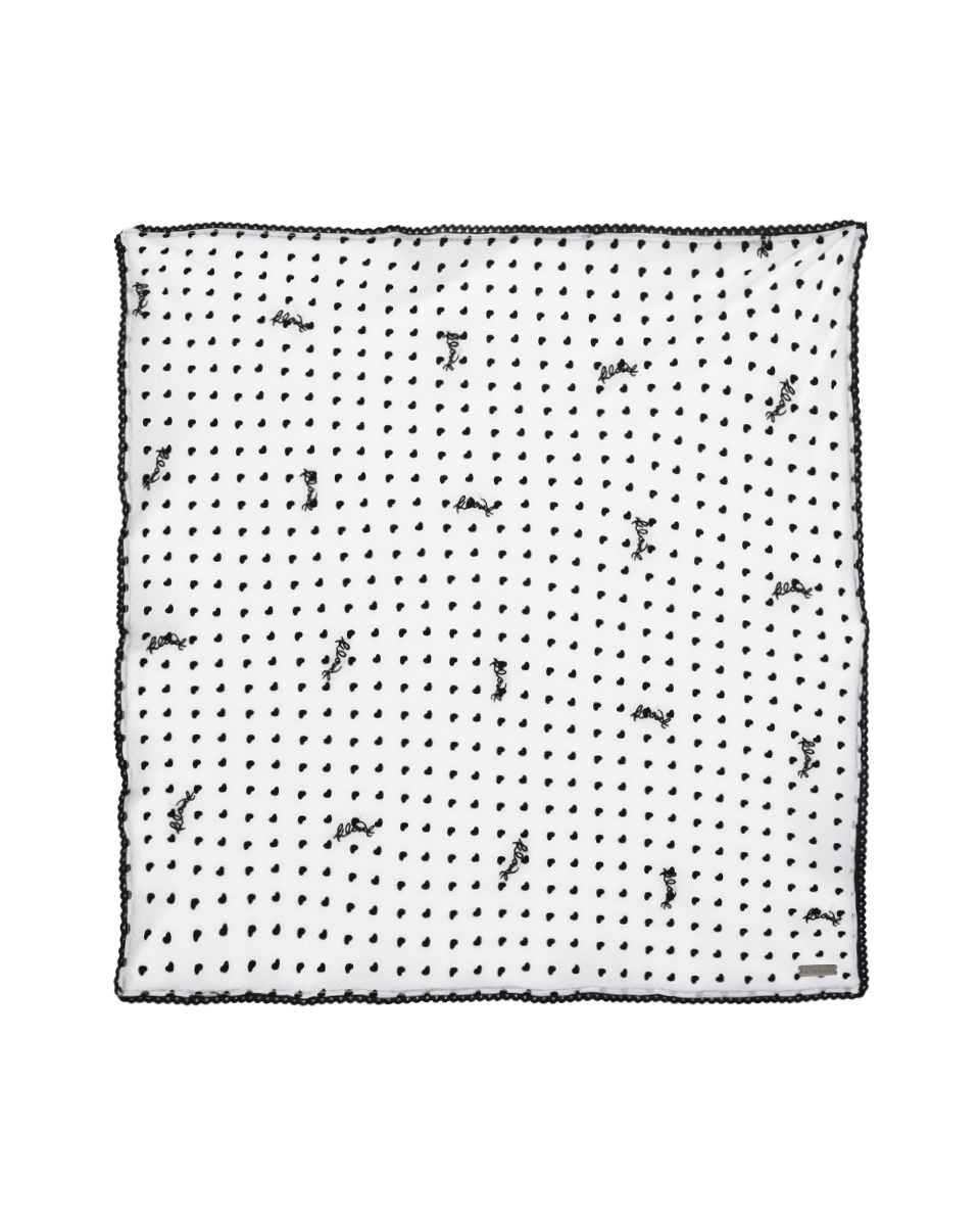 Fit & Detail:A charming polka-dot head scarf crafted from soft rayon fabric for a comfortable feel. Adorned with plush velvet heart details and an embroidered Kloset logo, it adds a touch of elegance and signature style to any outfit — perfect for both casual and chic looks.