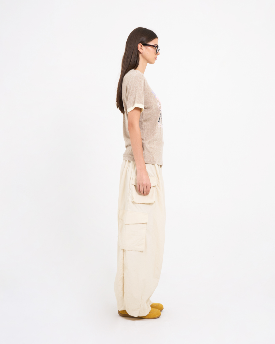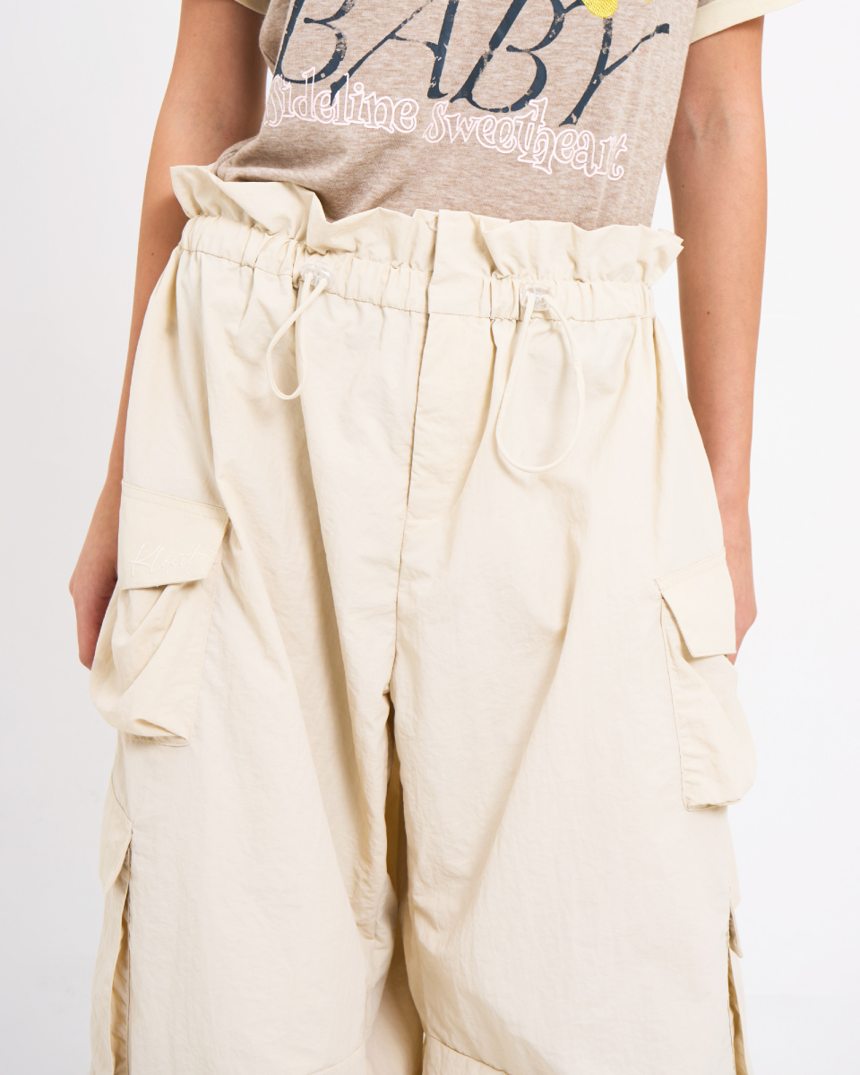 กางเกงคาร์โก้ผ้าร่ม ดีไซน์เชือกรูดที่เอวและปลายขา มาพร้อมกระเป๋าด้านข้างสไตล์คาร์โก้เพิ่มลุคเท่แบบยูทิลิตี้ แมทช์ง่ายกับเสื้อยืด เสื้อครอป หรือเสื้อเชิ้ต สร้างลุคสตรีตสุดคูลได้ทุกวัน