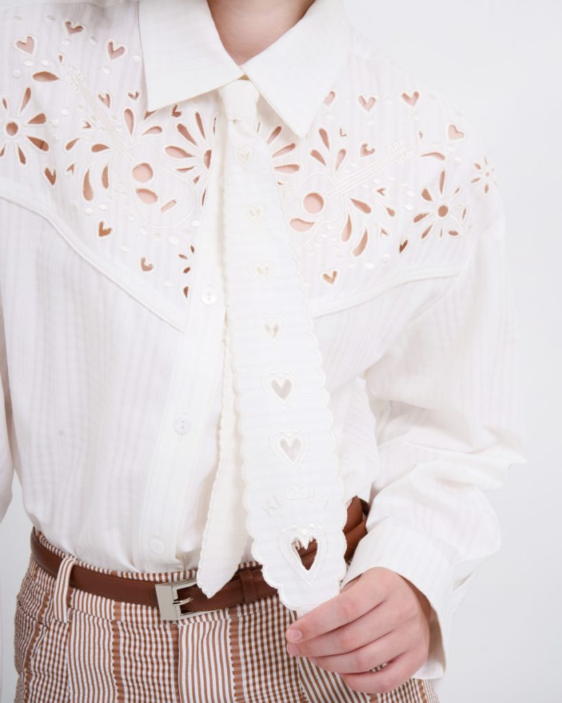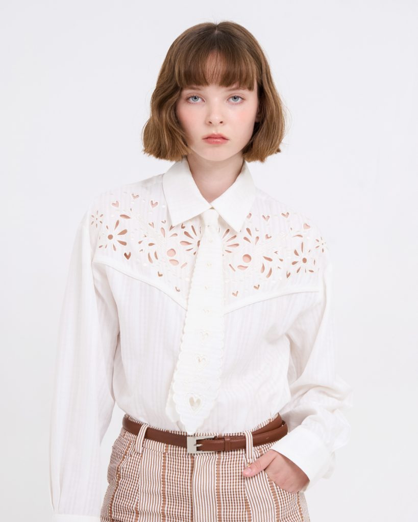 Fit & Detail: Delicate floral eyelet tie that you can style yourself. Adds a charming, fashionable touch to any outfit — perfect for both sweet and chic looks.