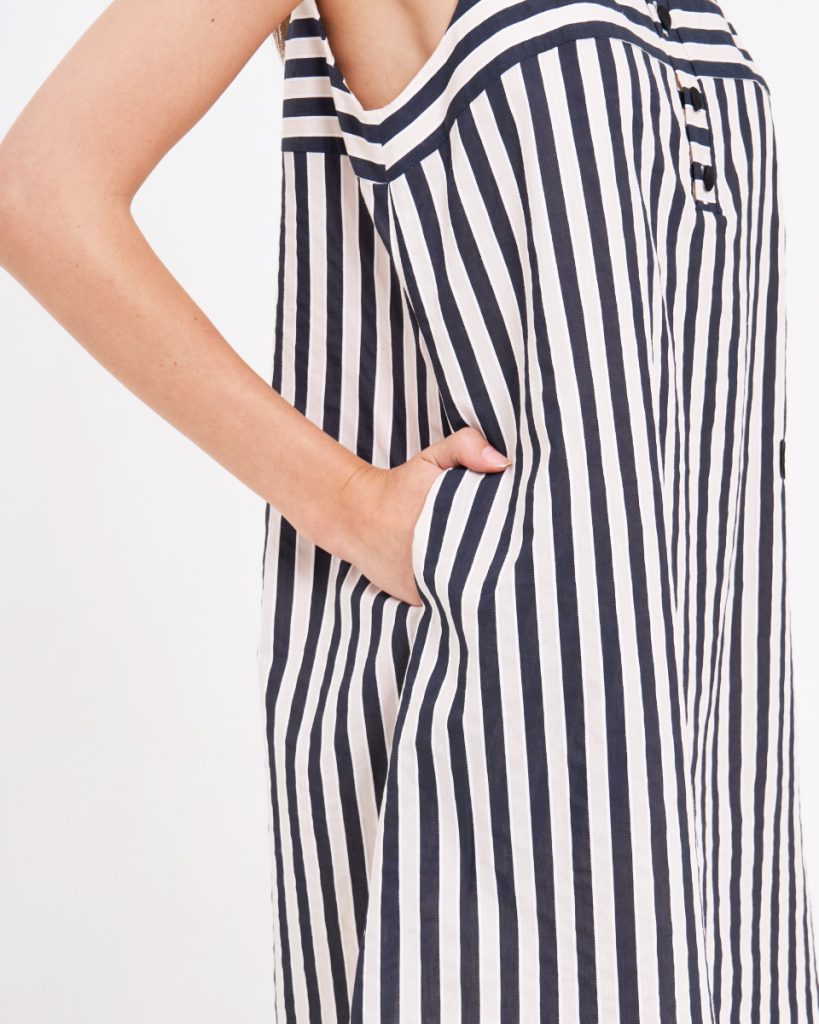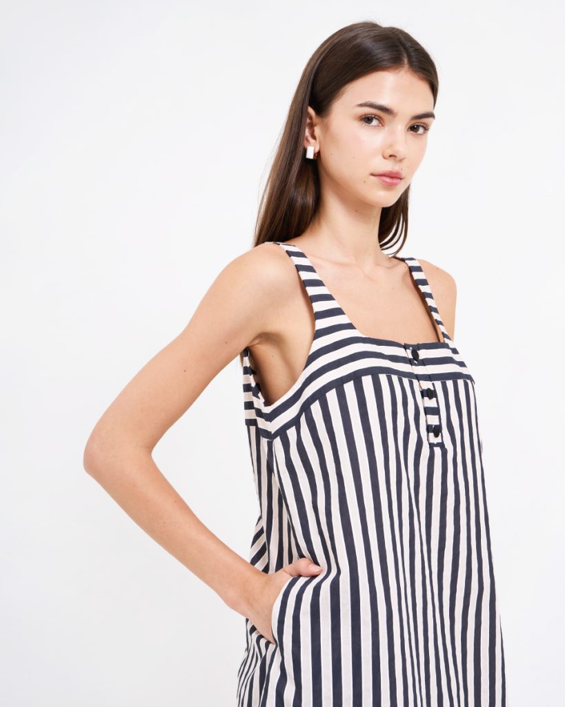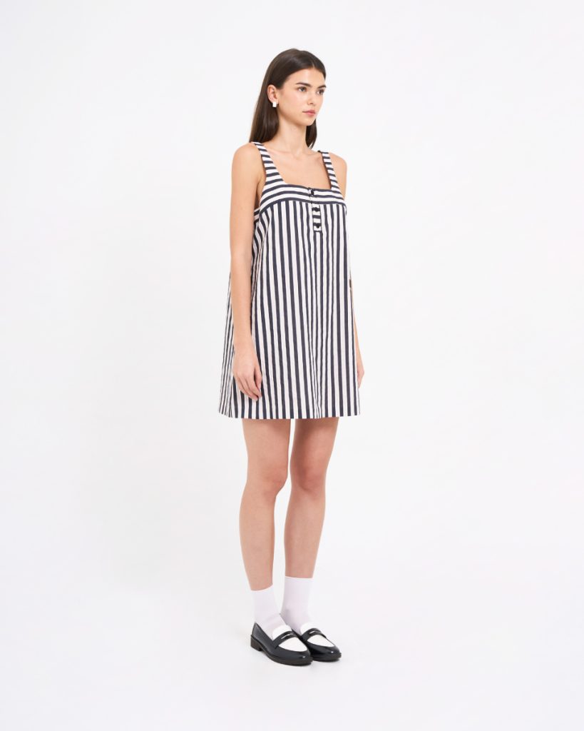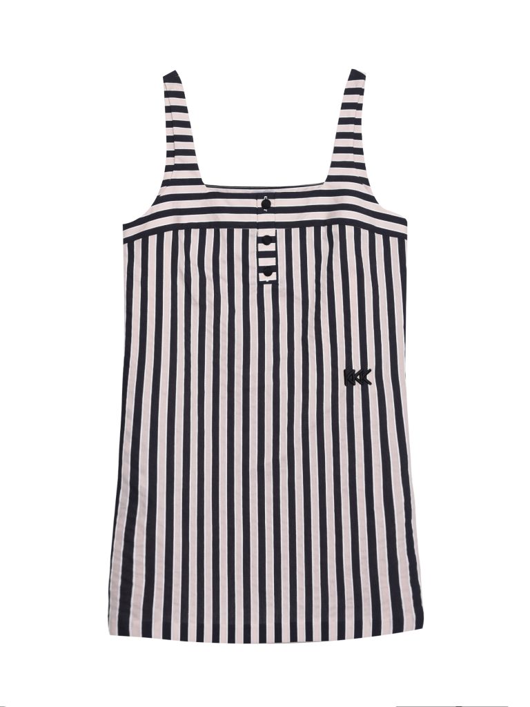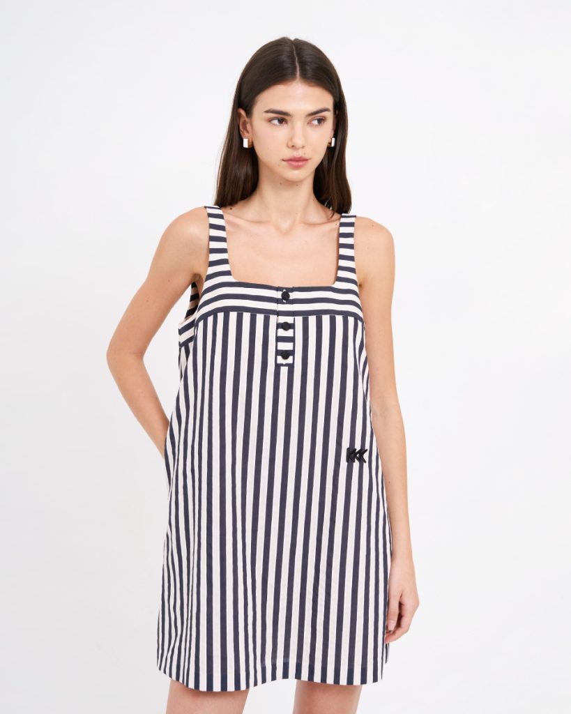 Fit & Detail: A cute minimal-style striped dress from Kloset, designed in a flattering mini silhouette that creates a fresh and elongated look. It adds a touch of fun and playfulness to a modern feminine style, crafted from soft, comfortable fabric for effortless everyday wear.
