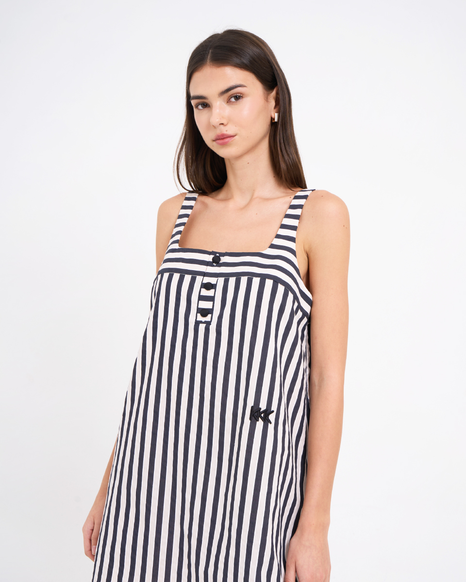Fit & Detail: A cute minimal-style striped dress from Kloset, designed in a flattering mini silhouette that creates a fresh and elongated look. It adds a touch of fun and playfulness to a modern feminine style, crafted from soft, comfortable fabric for effortless everyday wear.