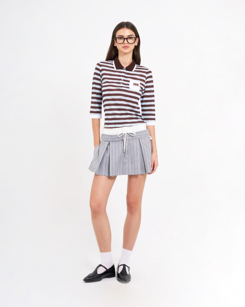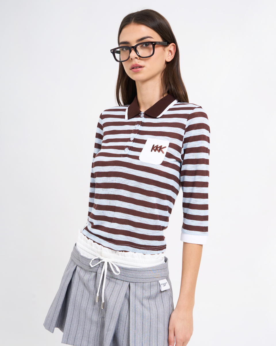 Fit & Detail: A classic minimal striped polo top that blends modern edge with a touch of sweetness — perfectly reflecting Kloset’s signature style.
