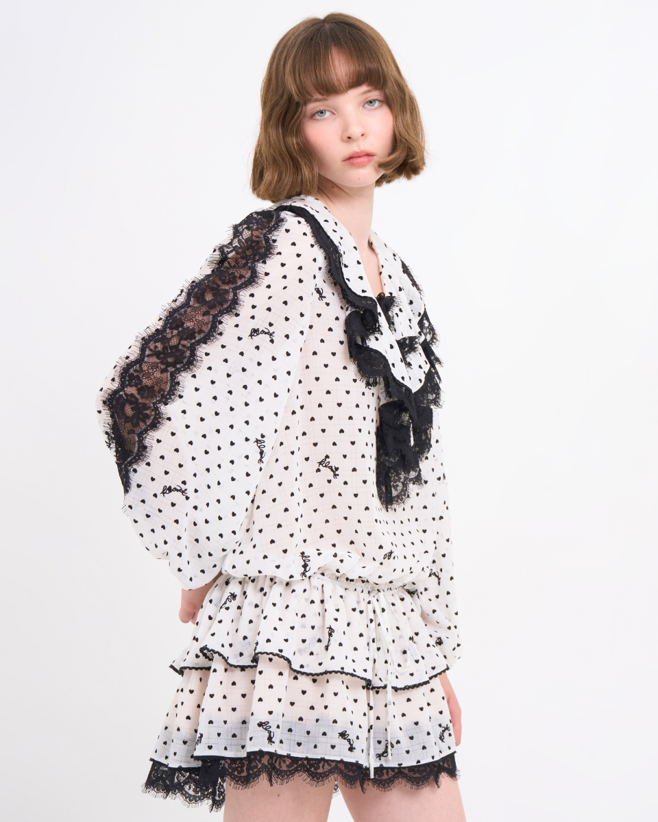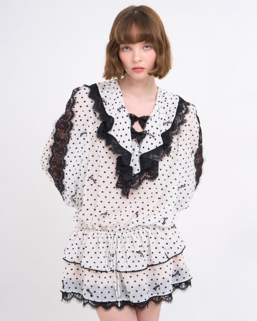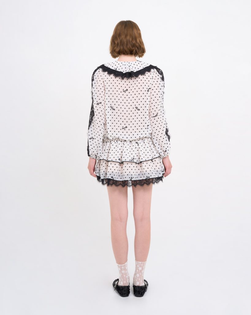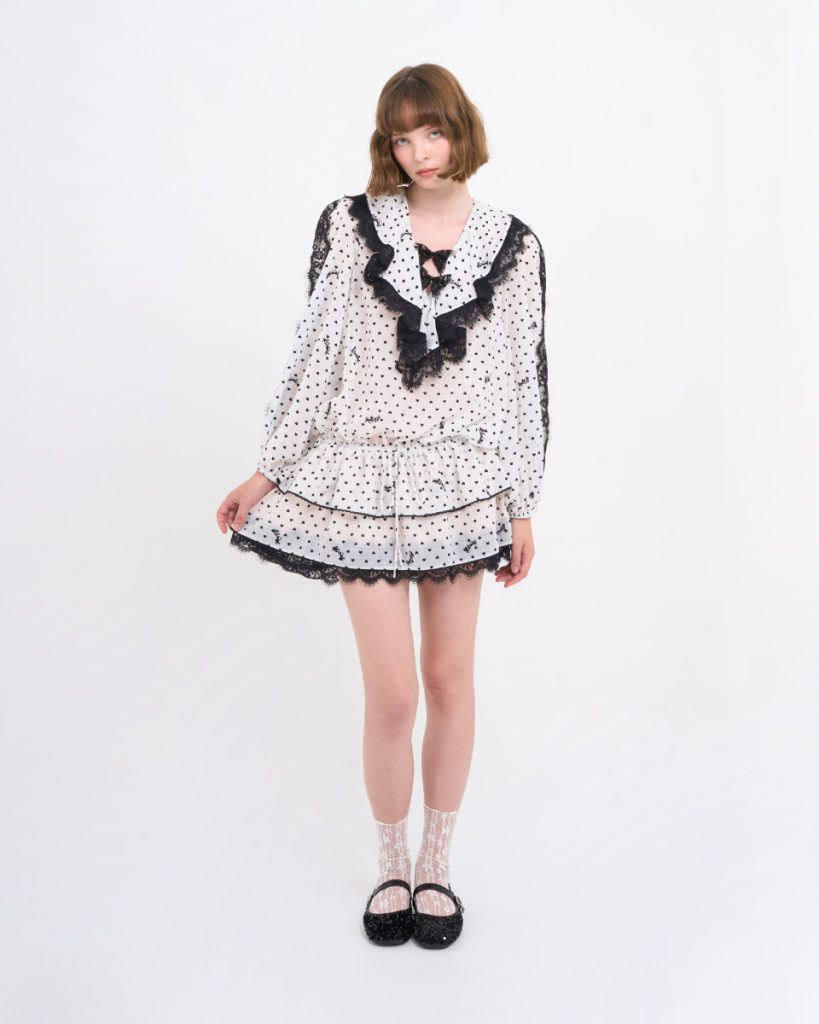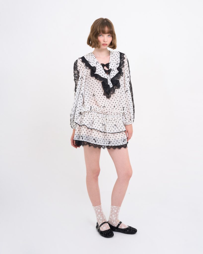 เดรสมินิแต่งระบายหลายชั้น พร้อมขอบลูกไม้ เพิ่มเสน่ห์หวานละมุน ลุคเฟมินีนที่ทั้งหวานและสง่างามในเวลาเดียวกัน
