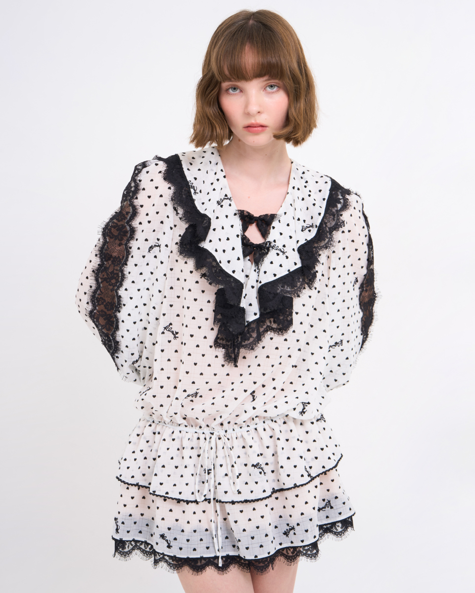 Fit & Detail: Mini tiered dress with delicate lace trims, exuding a soft romantic charm. A feminine look that beautifully blends sweetness with elegance.