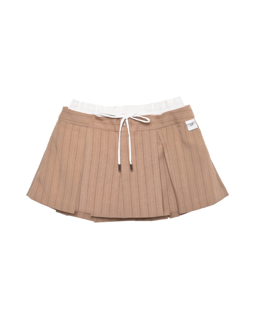 กระโปรงมินิสเกิร์ตลายริ้วสุดคลาสสิก ดีเทลจับจีบพร้อมซับด้านในแบบบ็อกเซอร์ เพิ่มความสบายและความมั่นใจในการสวมใส่ ให้ลุคเรียบหรูแบบมินิมอลในสไตล์ Kloset