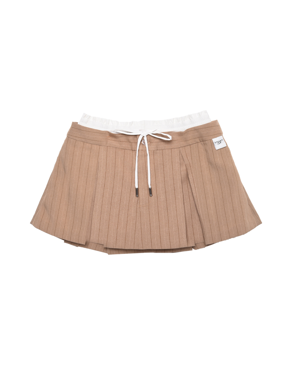 Fit & Detail: A classic pinstripe mini skirt featuring pleated detailing and a boxer-style inner lining for added comfort and confidence. It delivers a refined, minimalist look with Kloset’s signature elegance.