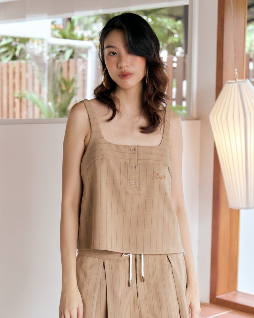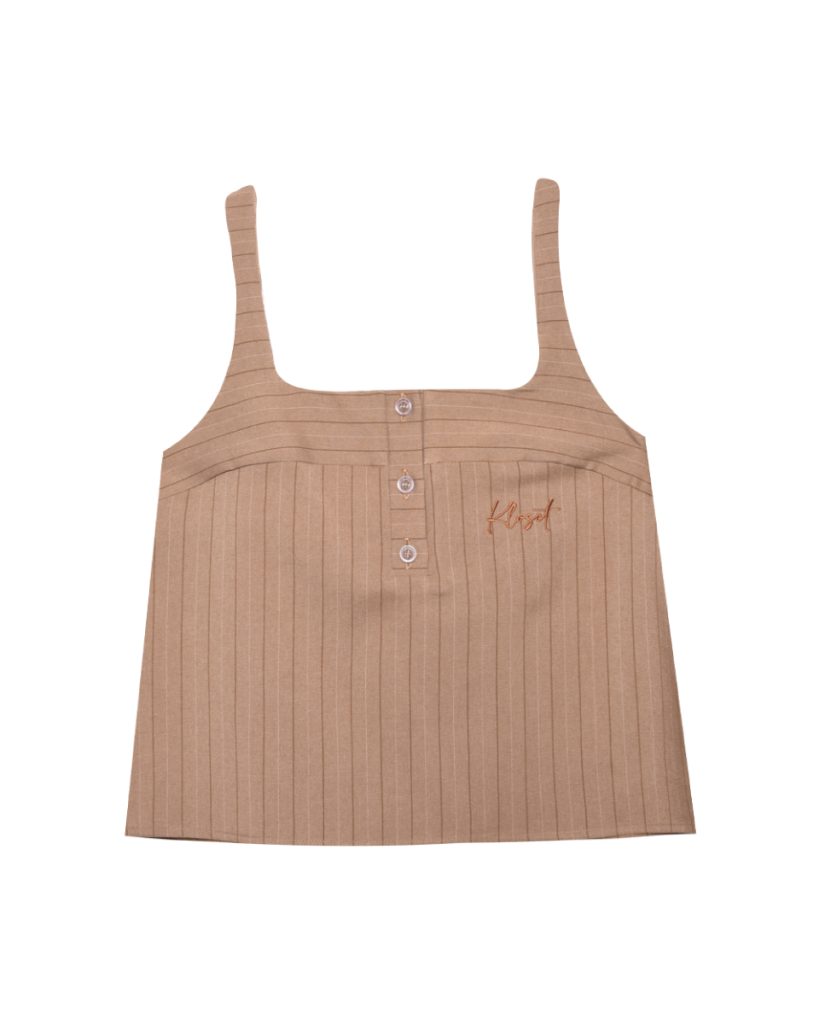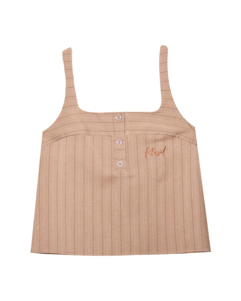 เสื้อแขนกุดลายริ้วสุดคลาสสิก มาพร้อมซับหน้าอกอีกชั้นเพื่อความสบายในการสวมใส่ ตกแต่งด้วยดีเทลปักโลโก้เพิ่มความเรียบหรูและโดดเด่นแบบมีสไตล์