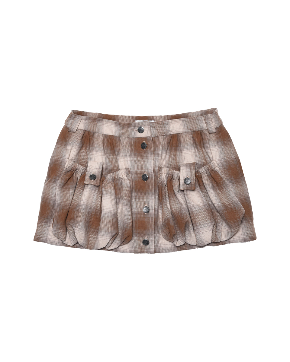 Plaid Bubble Mini Skirt in Brown