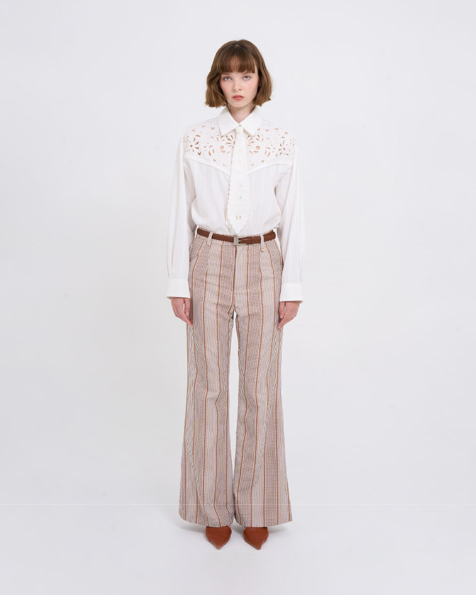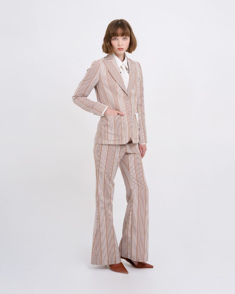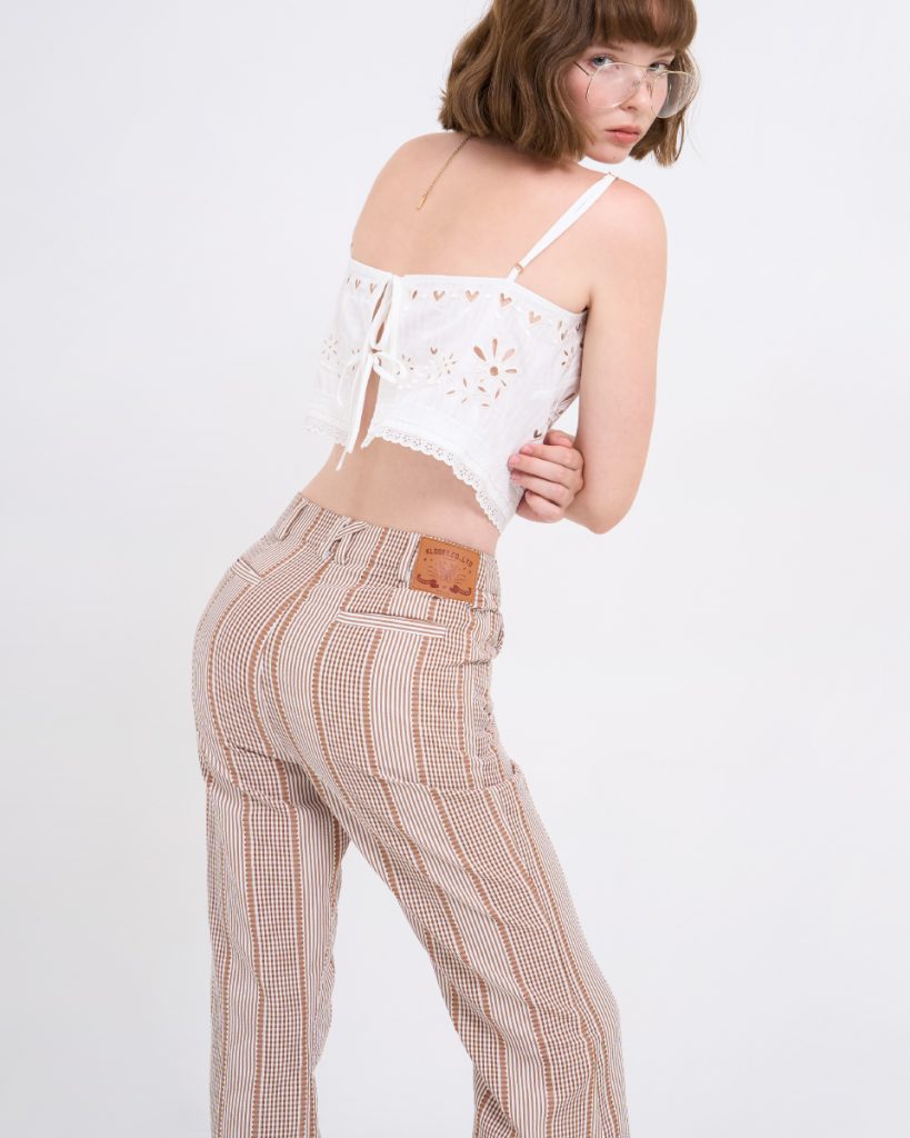 กางเกงลายตารางดีไซน์คลาสสิก เติมความเรียบหรูให้ทุกลุค ตัดเย็บจากผ้าที่มีโครงสวย ใส่สบายและช่วยให้รูปร่างดูเพรียว เหมาะกับทั้งลุคทำงานและลุคแคชชวลในวันสบาย ๆ