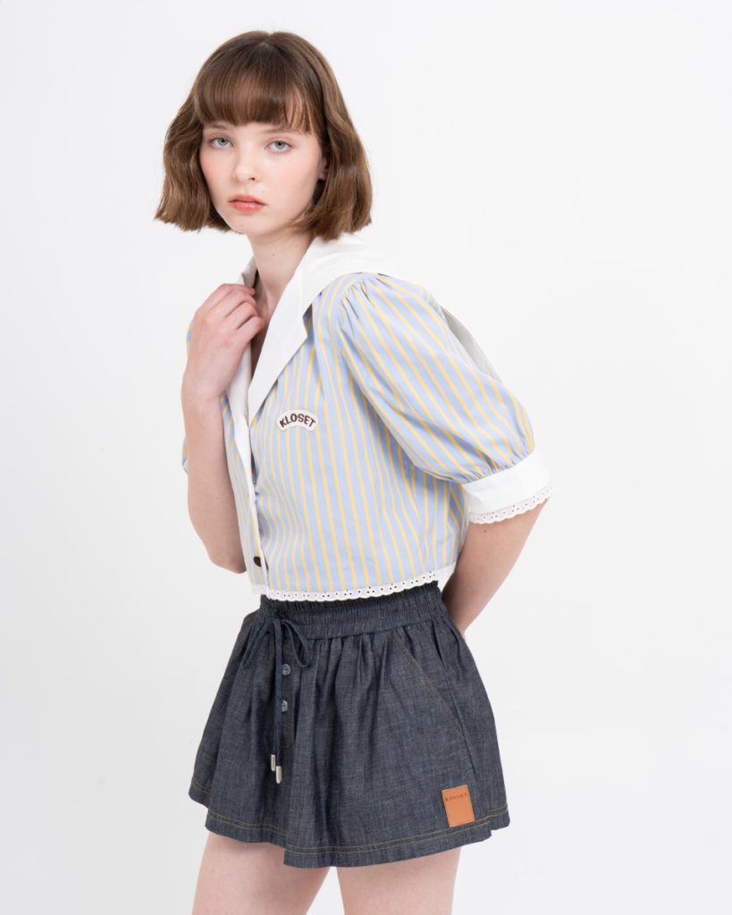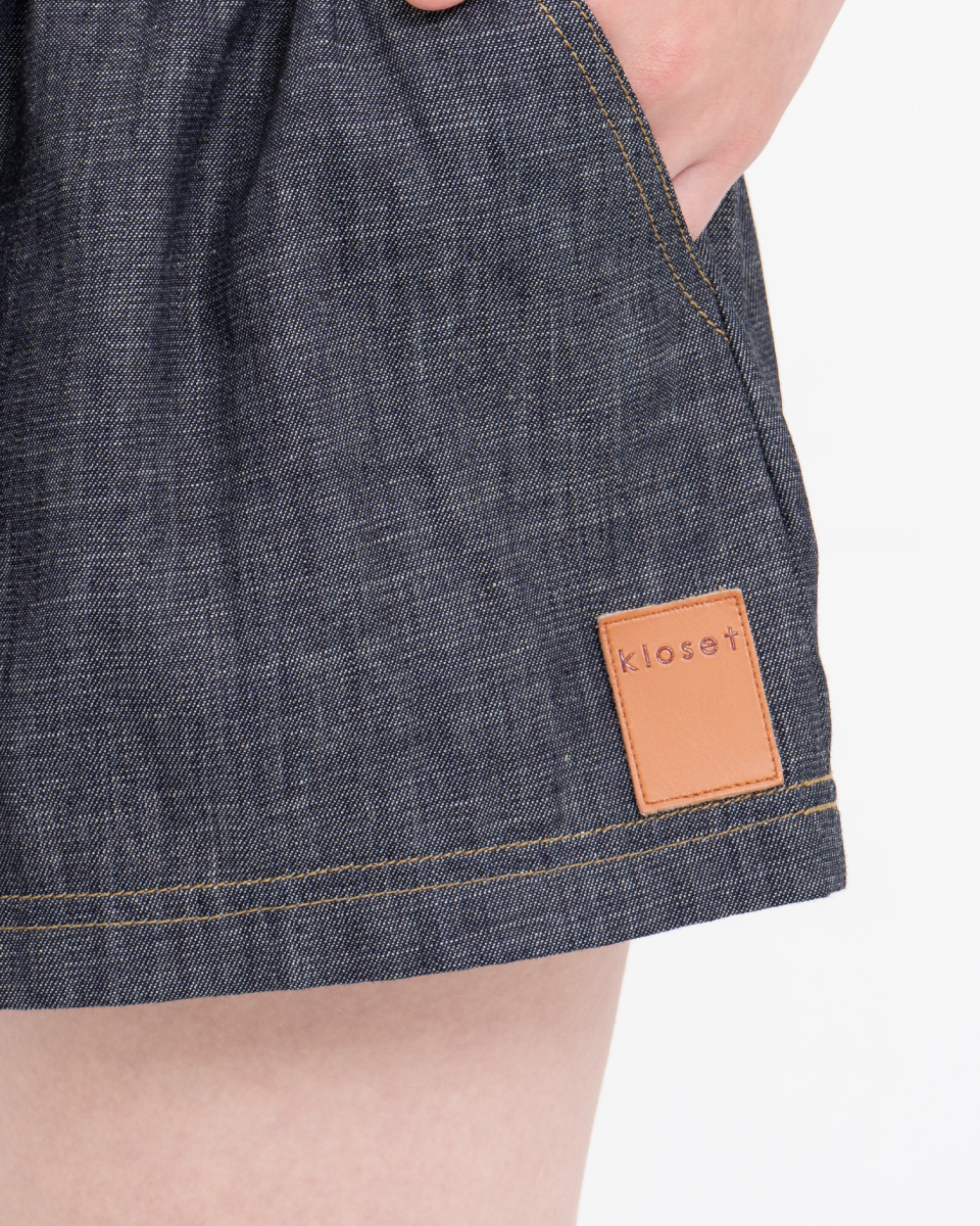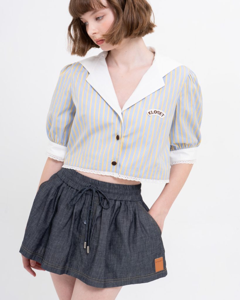 กระโปรงมินิสเกิร์ตดีไซน์ด้านในเป็นกางเกง (skort) พร้อมเอวยางยืดให้ความกระชับและใส่สบาย ทรงกระโปรงบานเพิ่มความคล่องตัวและลุคสดใส